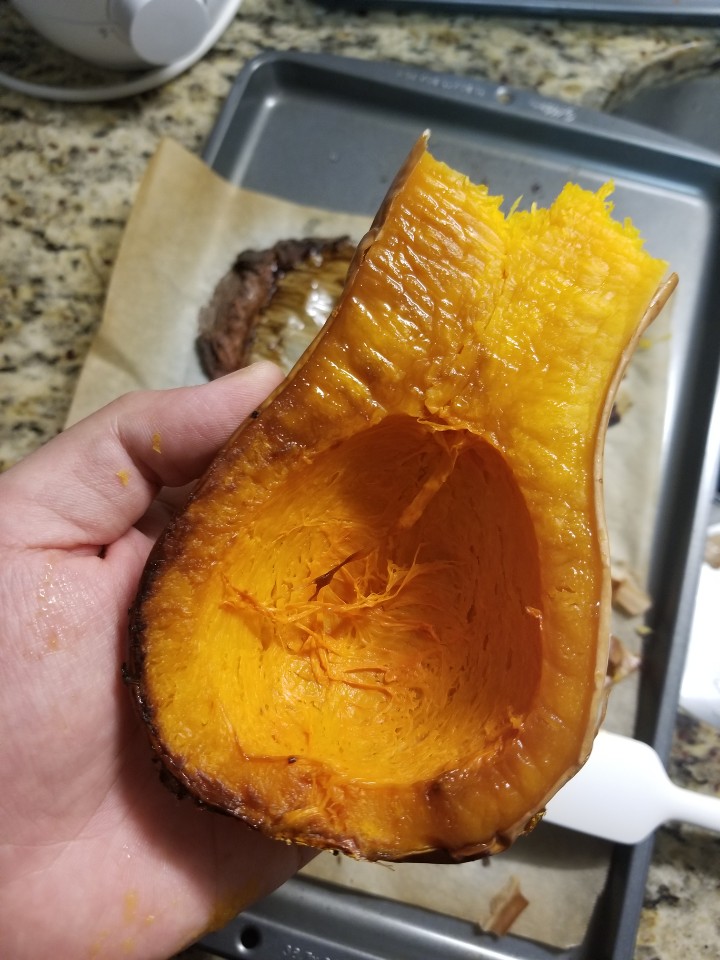 뭔가 땅콩과 표주박 그 중간사이쯤의 모양이다. 그래서 한국에선 땅콩호박이라고 불리우나? ㅋㅋ 겉은 우리나라의 늙은호박에 가까운 색을 갖고있다. 미국 이민오고 늙은호박을 먹은적이없어서 확실하진않지만..친정엄마피셜 맛 또한 늙은호박과 흡사하다했다. 보편전으로 미국에선 스프에 많이쓰이는데, 그 또한 호박죽을 먹는듯한 느낌이랄까? 부드럽고 달큰한맛 덕에 미국에서 초기 이유식재료로 자주 쓰이는 재료이다.