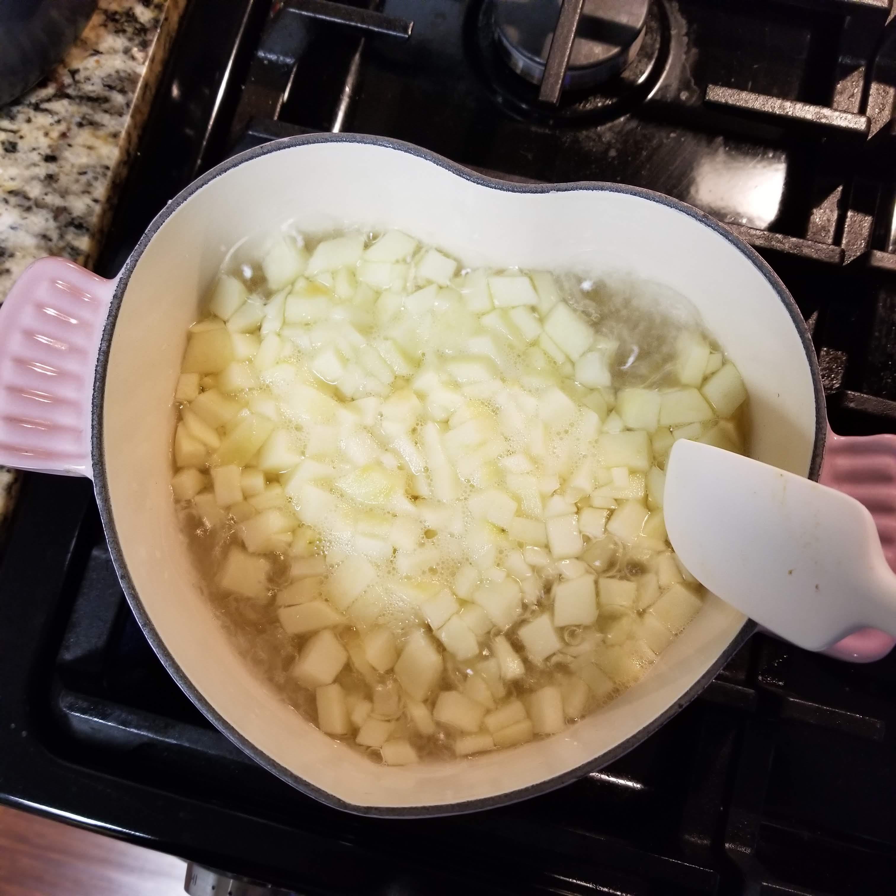 4. 사과를 보글보글 끓여준다. 언제까지 끓여야하는걸까? 감이 안와서 그냥 끓이다보니 이러다가 사과잼이 되는거 아닐까싶어서 물이 좀 졸아든다싶을때 불끄고 멈췄다.